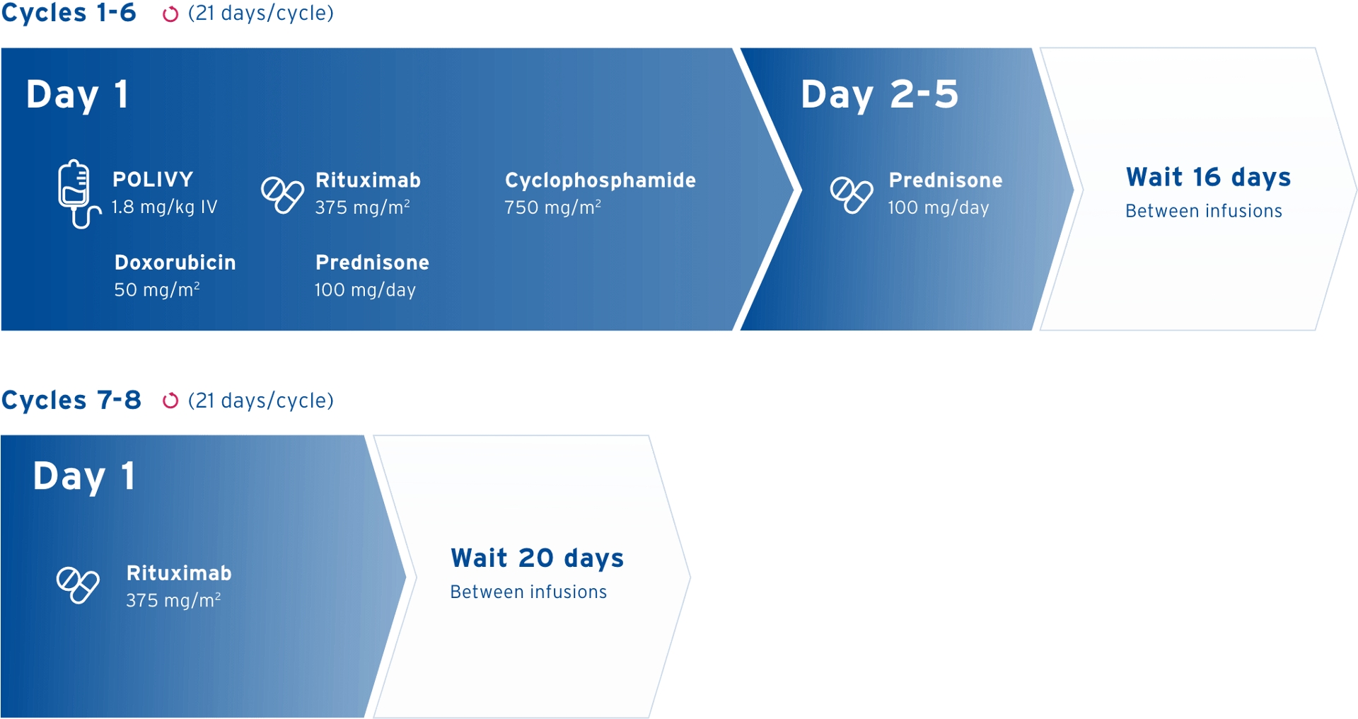 There are different potential dose modifications for POLIVY in patients with previously untreated DLBCL and those who are relapsed or refractory.1